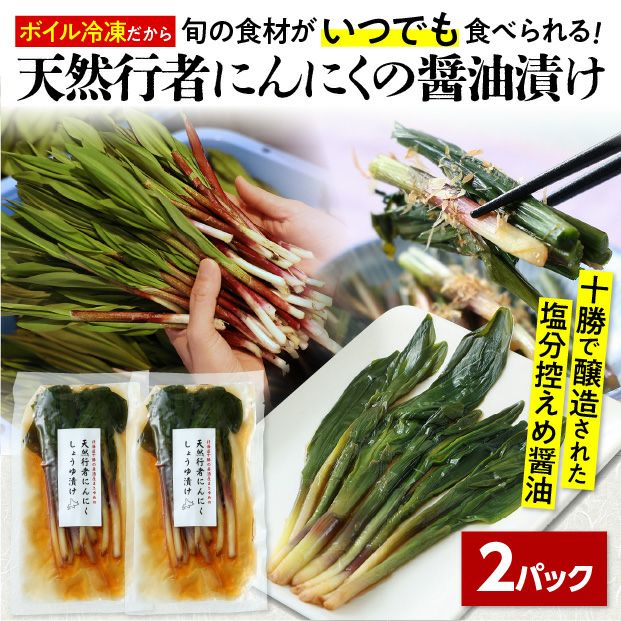 天然の行者にんにくは味、風味、栄養価が高く、栽培ものとは一線を画す美味しさです。その行者にんにくを、十勝で醸造された塩分控えめの醤油に漬けました。